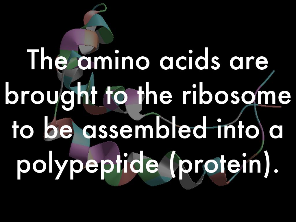 The amino acids are brought to the ribosome to be assembled into a polypeptide (protein).