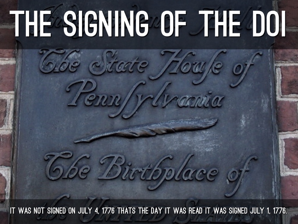 IT WAS NOT SIGNED ON JULY 4, 1776 THATS THE DAY IT WAS READ IT WAS SIGNED JULY 1, 1776.