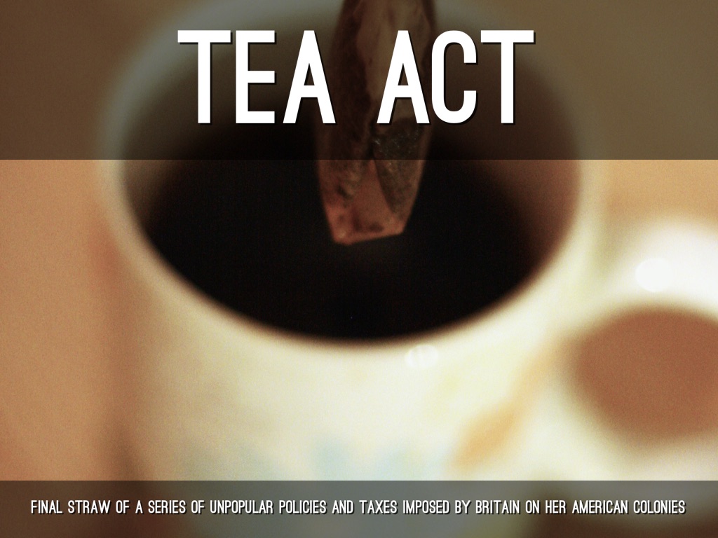FINAL STRAW OF A SERIES OF UNPOPULAR POLICIES AND TAXES IMPOSED BY BRITAIN ON HER AMERICAN COLONIES