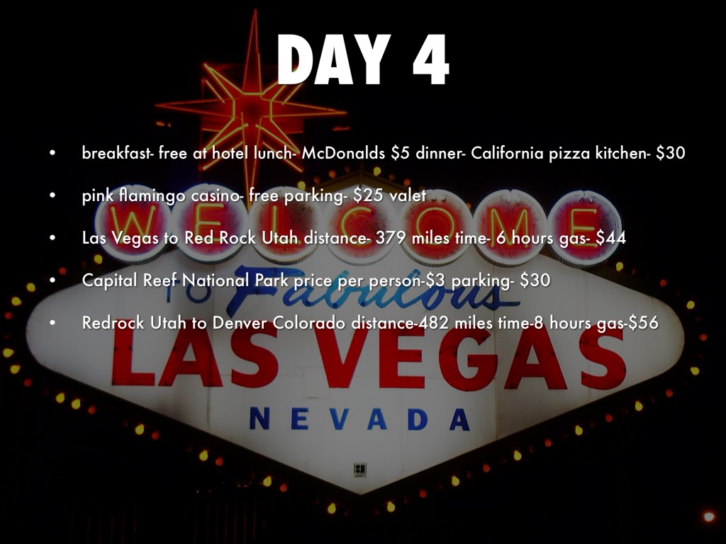 • Las Vegas to Red Rock Utah distance- 379 miles time- 6 hours gas- $44