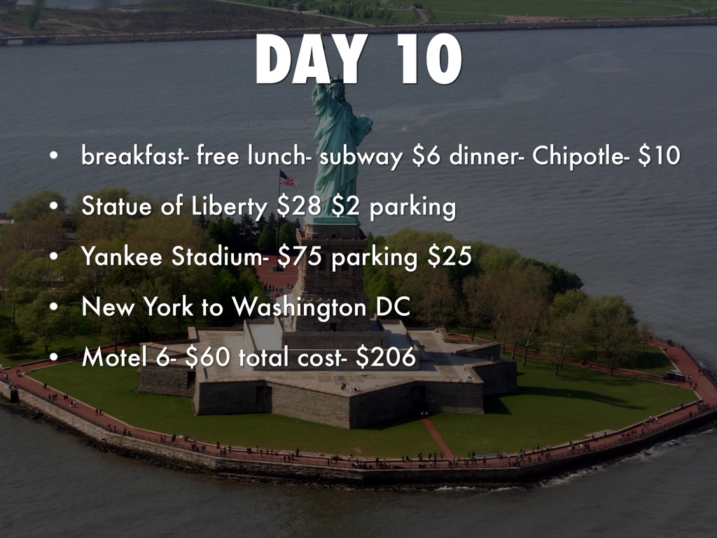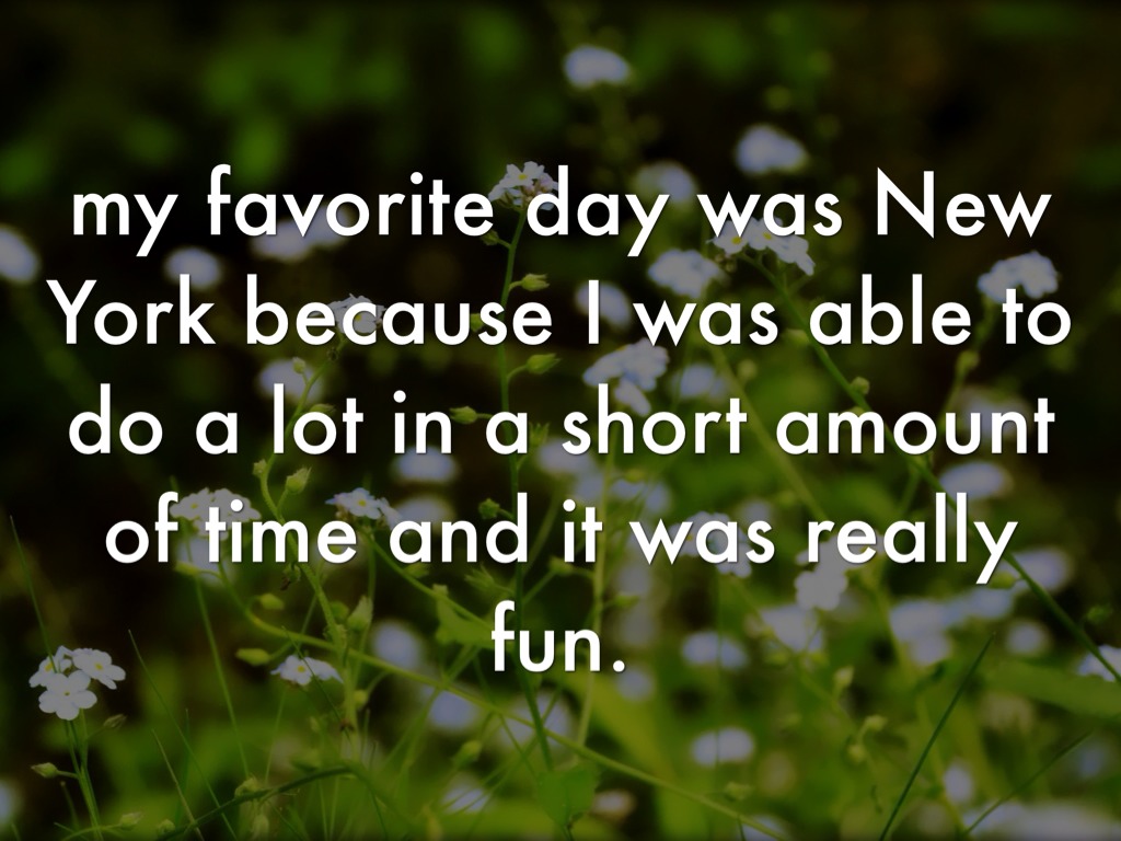 my favorite day was New York because I was able to do a lot in a short amount of time and it was really fun.