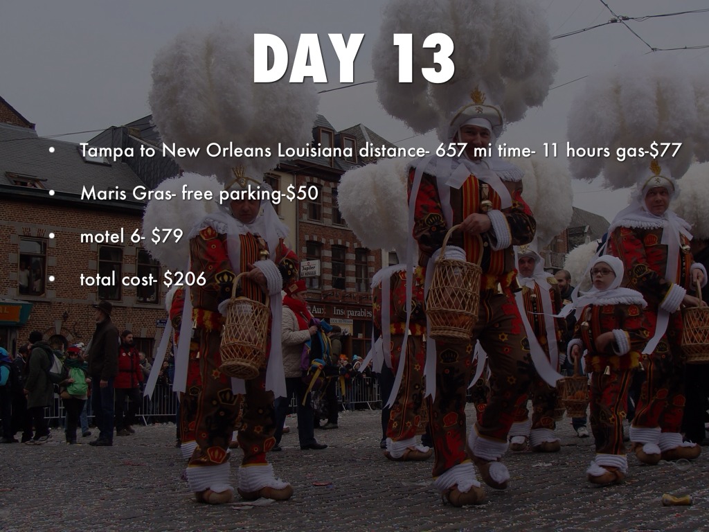 • Tampa to New Orleans Louisiana distance- 657 mi time- 11 hours gas-$77