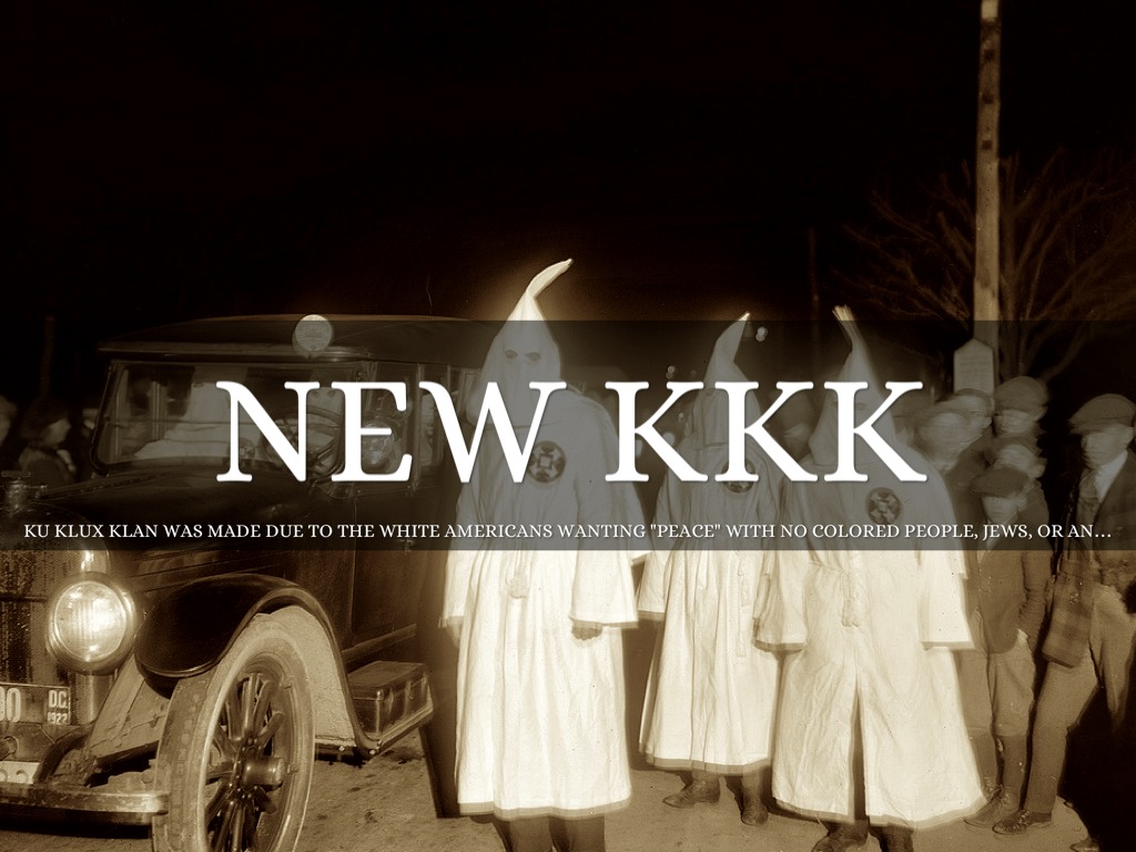 KU KLUX KLAN WAS MADE DUE TO THE WHITE AMERICANS WANTING "PEACE" WITH NO COLORED PEOPLE, JEWS, OR ANYONE THAT WAS NOT LIKE THEM.
