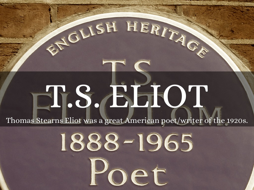 Thomas Stearns Eliot was a great American poet/writer of the 1920s.