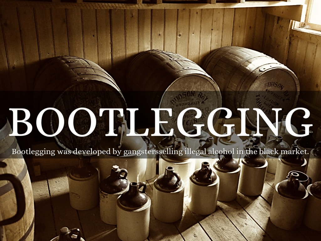 Bootlegging was developed by gangstersselling illegal alcohol in the black market.
