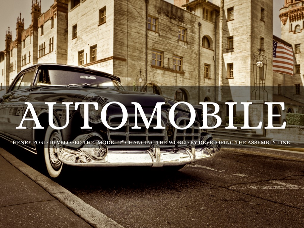 HENRY FORD DEVELOPED THE "MODEL T" CHANGING THE WORLD BY DEVELOPING THE ASSEMBLY LINE.
