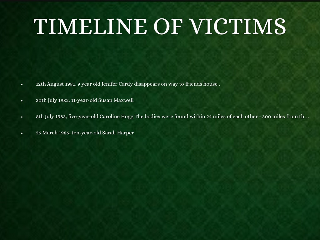 8th July 1983, five-year-old Caroline Hogg The bodies were found within 24 miles of each other - 300 miles from the abductions.