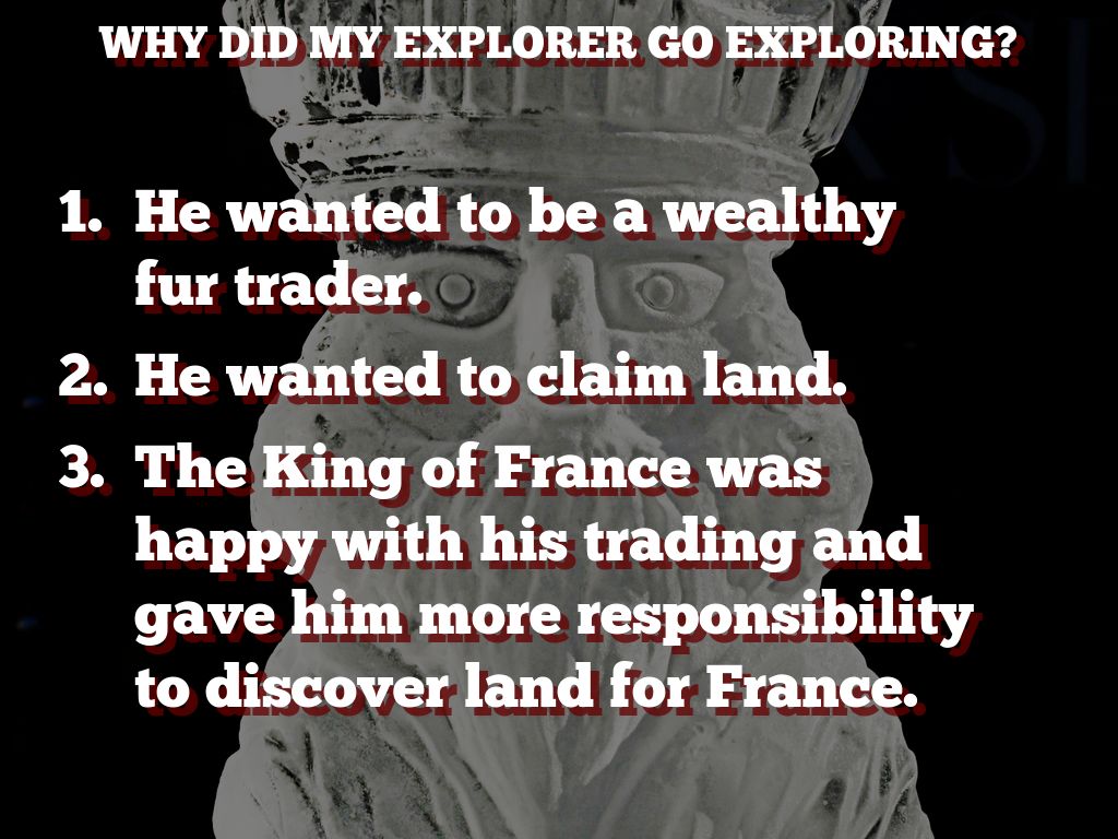 The King of France was happy with his trading and gave him more responsibility to discover land for France.