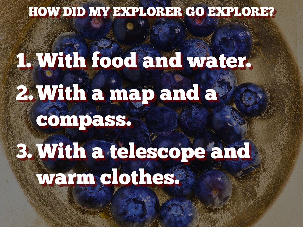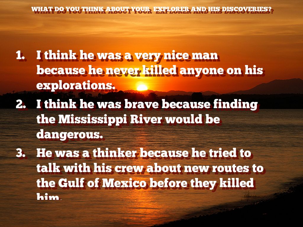 WHAT DO YOU THINK ABOUT YOUR EXPLORER AND HIS DISCOVERIES?