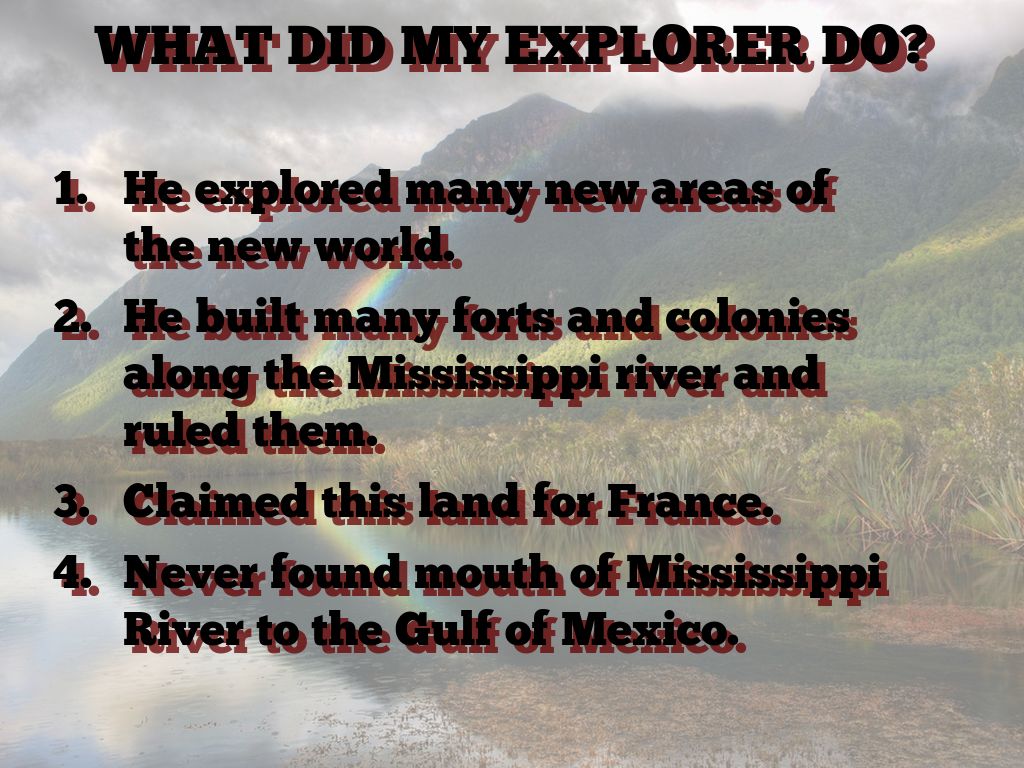 WHERE DID MY EXPLORER DO HIS EXPLORATIONS?