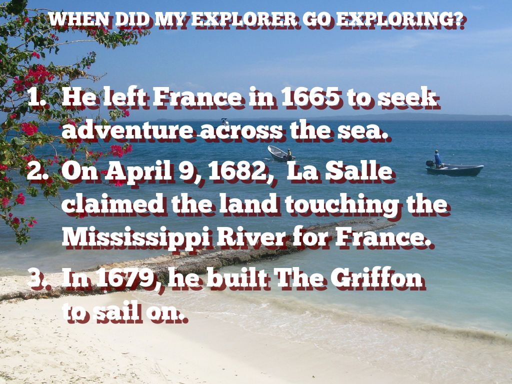 On April 9, 1682, La Salle claimed the land touching the Mississippi River for France.
