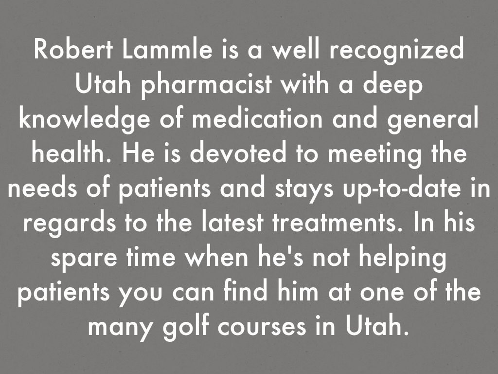 Robert Lammle is a well recognized Utah pharmacist with a deep knowledge of medication and general health. He is devoted to meeting the needs of patients and stays up-to-date in regards to the latest treatments. In his spare time when he's not helping patients you can find him at one of the many golf courses in Utah.