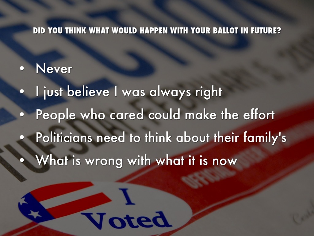 HOW DID YOU SHOW YOUR OPINION TO OTHER PEOPLE?