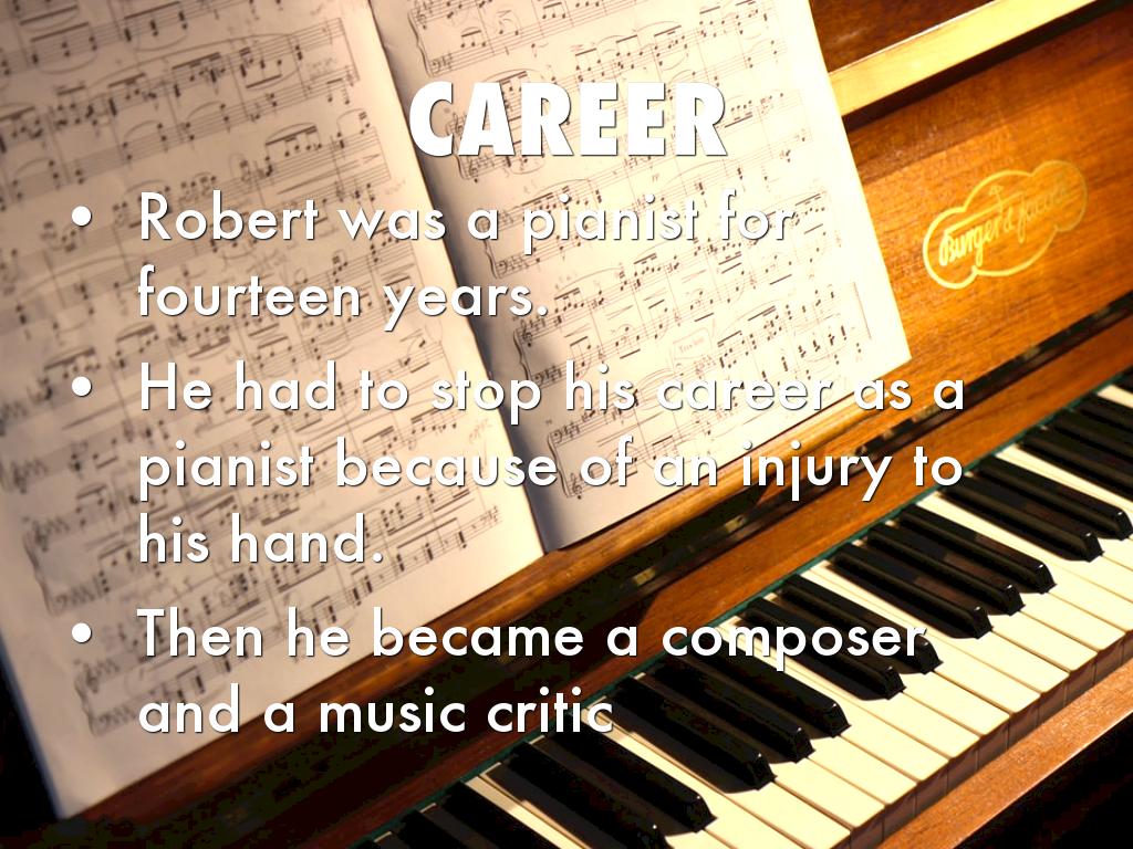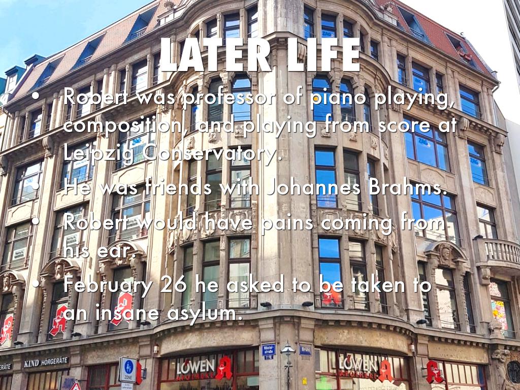 Robert was professor of piano playing, composition, and playing from score at Leipzig Conservatory.