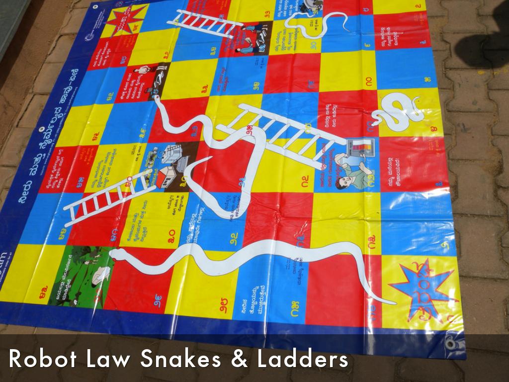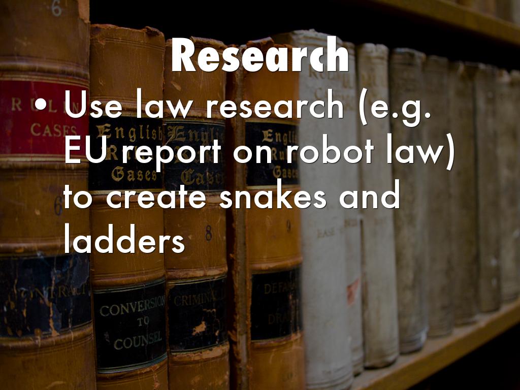 Use law research (e.g. EU report on robot law) to create snakes and ladders