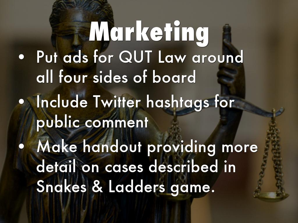 Make handout providing more detail on cases described in Snakes & Ladders game.