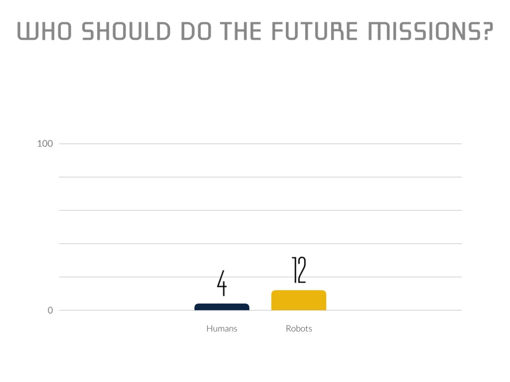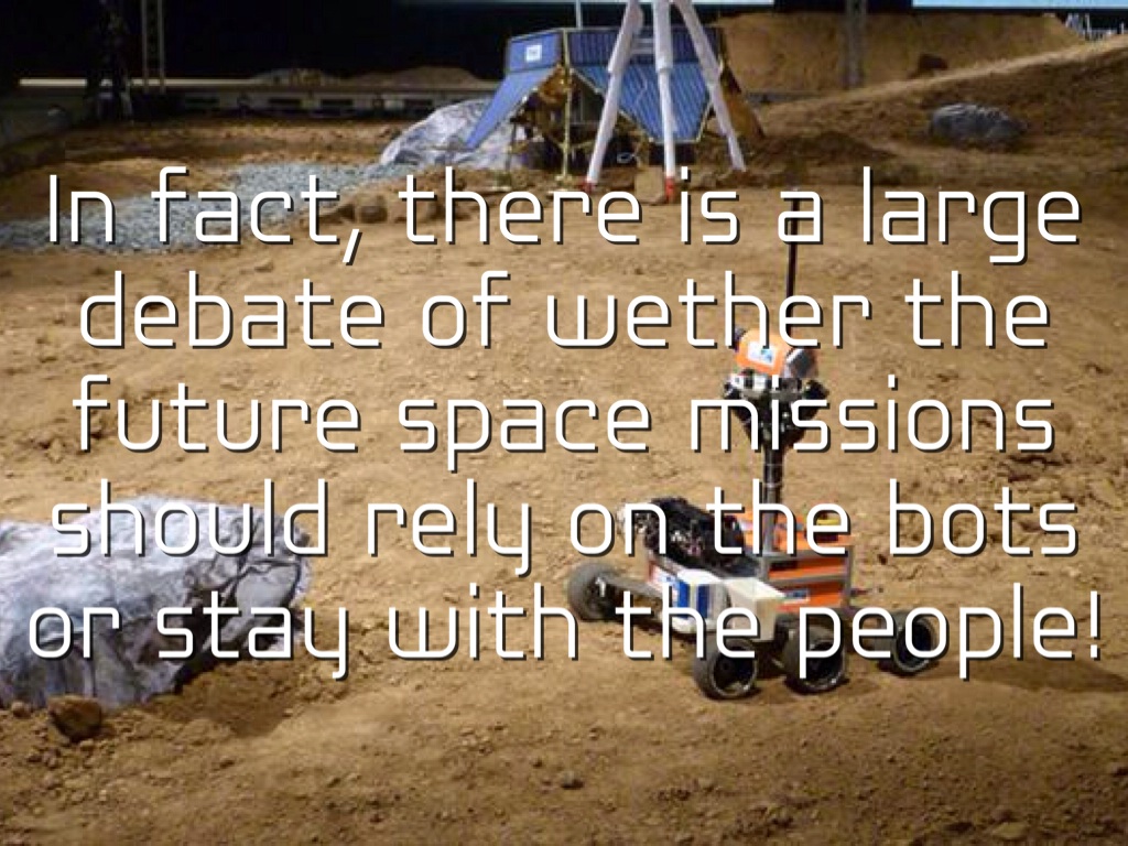 In fact, there is a large debate of wether the future space missions should rely on the bots or stay with the people!