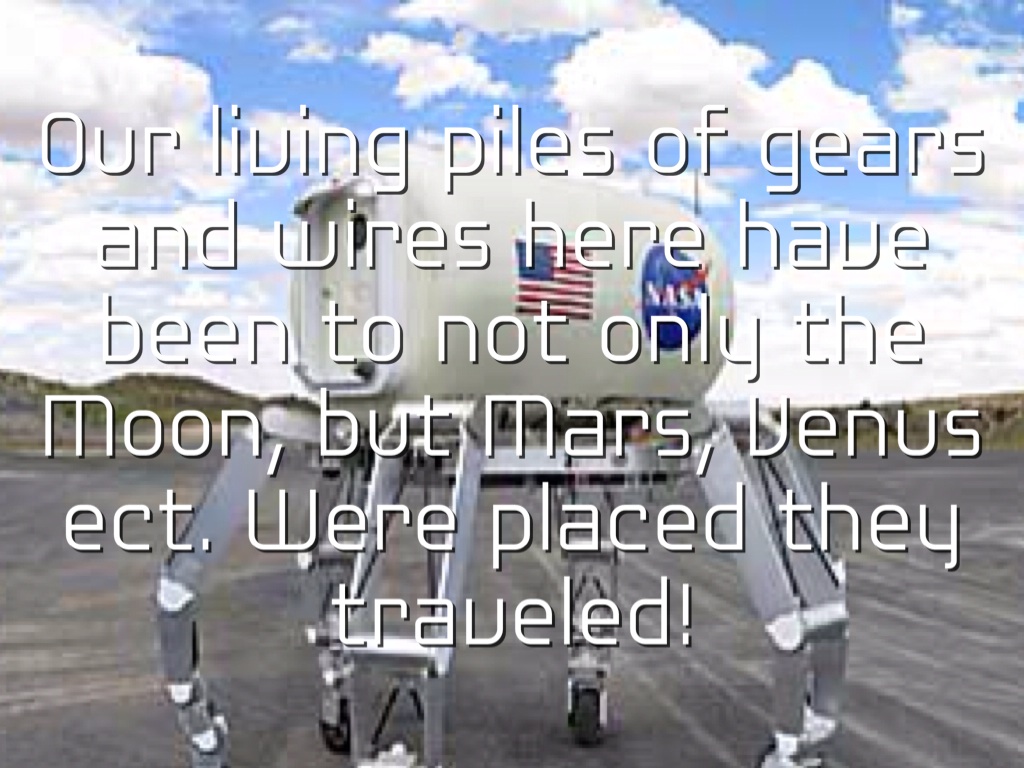 Our living piles of gears and wires here have been to not only the Moon, but Mars, Venus ect. Were placed they traveled!
