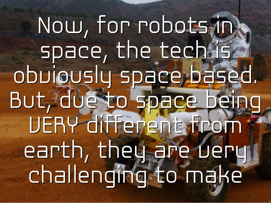 Now, for robots in space, the tech is obviously space based. But, due to space being VERY different from earth, they are very challenging to make