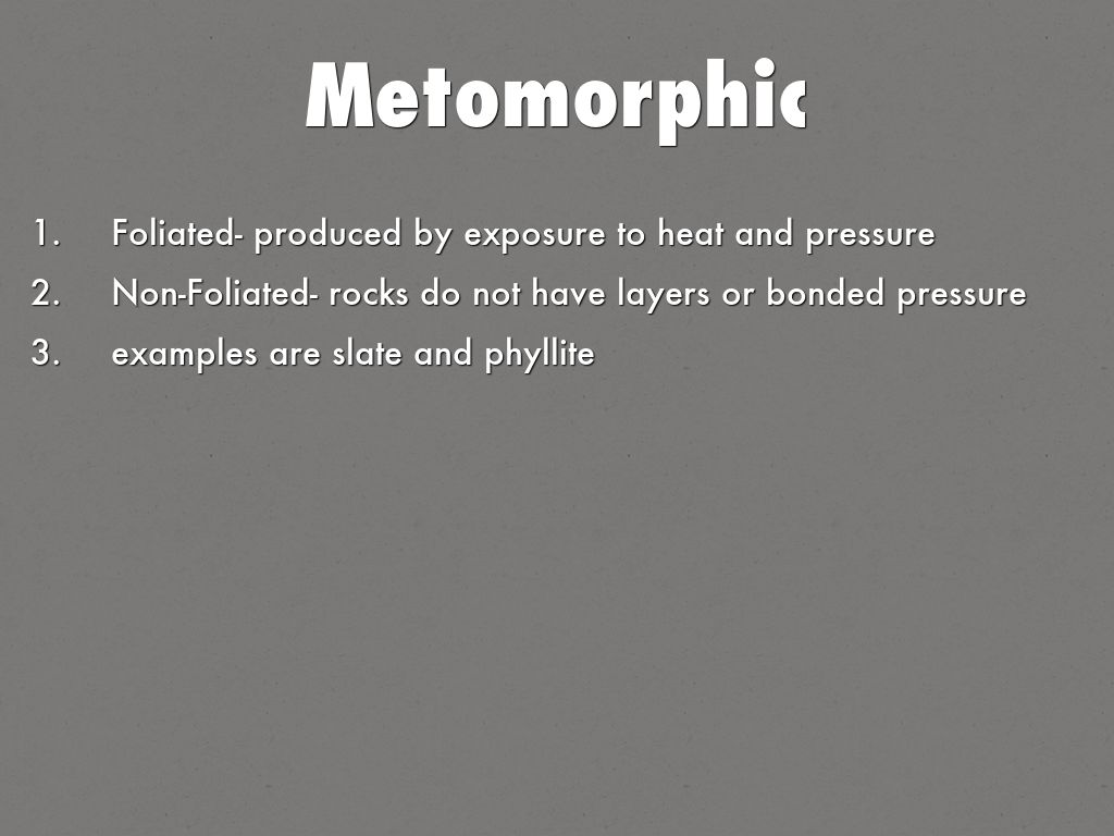 examples are slate and phyllite