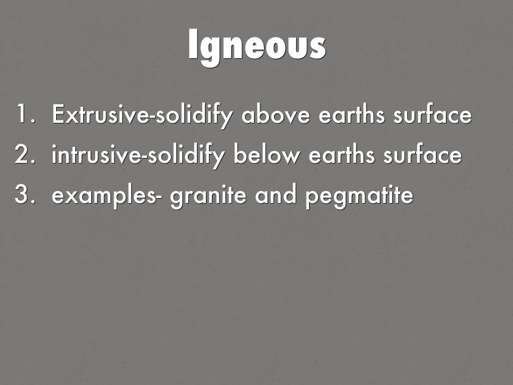 examples- granite and pegmatite