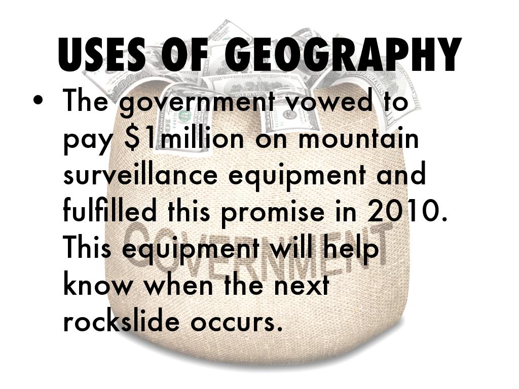 The government vowed to pay $1million on mountain surveillance equipment and fulfilled this promise in 2010. This equipment will help know when the next rockslide occurs.