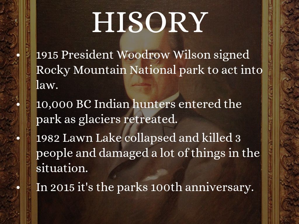 1915 President Woodrow Wilson signed Rocky Mountain National park to act into law.