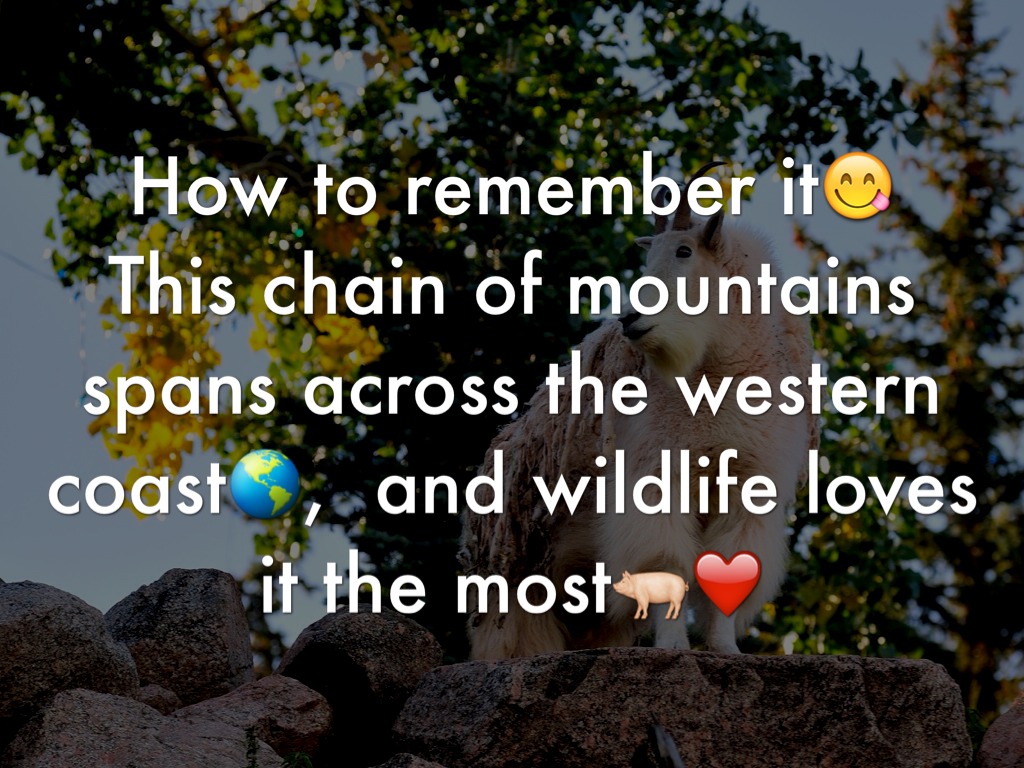 This chain of mountains spans across the western coast🌎, and wildlife loves it the most🐖❤️