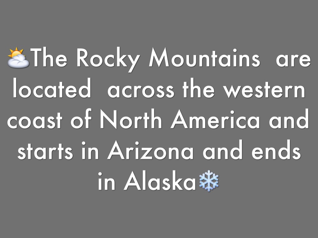 ⛅️The Rocky Mountains are located across the western coast of North America and starts in Arizona and ends in Alaska❄️