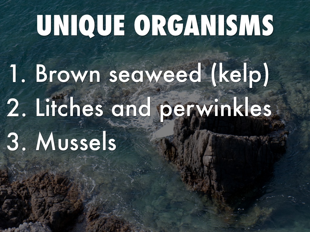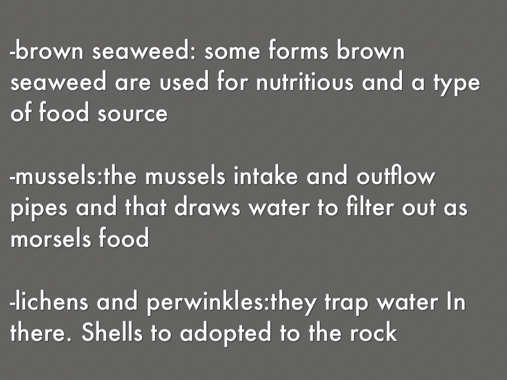 -lichens and perwinkles:they trap water In there. Shells to adopted to the rock