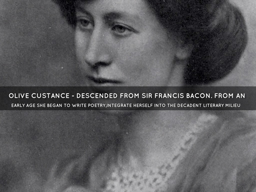 OLIVE CUSTANCE - DESCENDED FROM SIR FRANCIS BACON. FROM AN