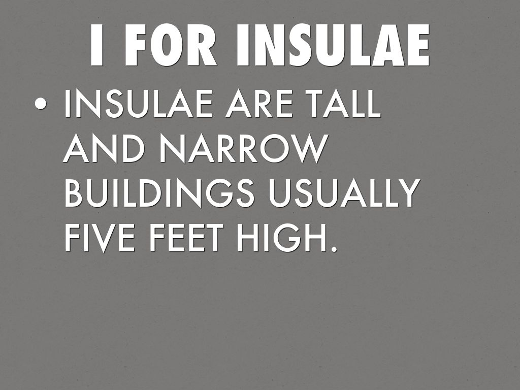 INSULAE ARE TALL AND NARROW BUILDINGS USUALLY FIVE FEET HIGH.