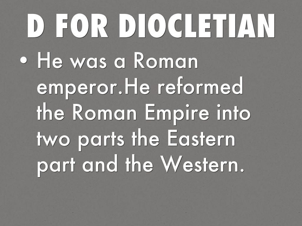 He was a Roman emperor.He reformed the Roman Empire into two parts the Eastern part and the Western.