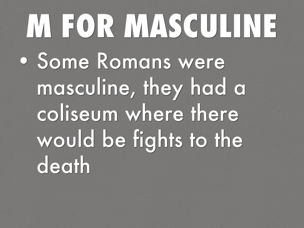 Some Romans were masculine, they had a coliseum where there would be fights to the death