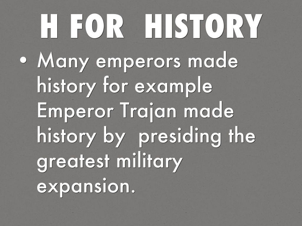 Many emperors made history for example Emperor Trajan made history by presiding the greatest military expansion.