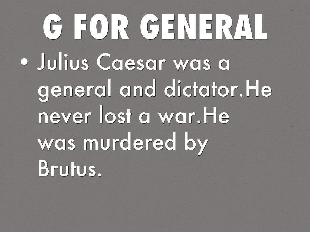 Julius Caesar was a general and dictator.He never lost a war.He was murdered by Brutus.