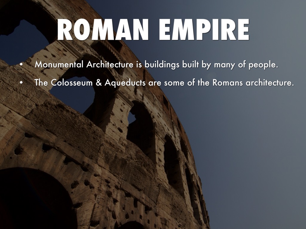 - The Colosseum & Aqueducts are some of the Romans architecture.