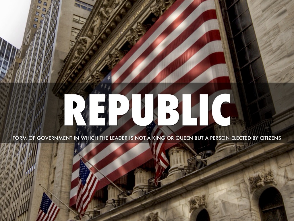 form of government in which the leader is not a king or queen but a person elected by citizens
