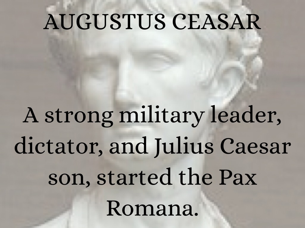 A strong military leader, dictator, and Julius Caesar son, started the Pax Romana.