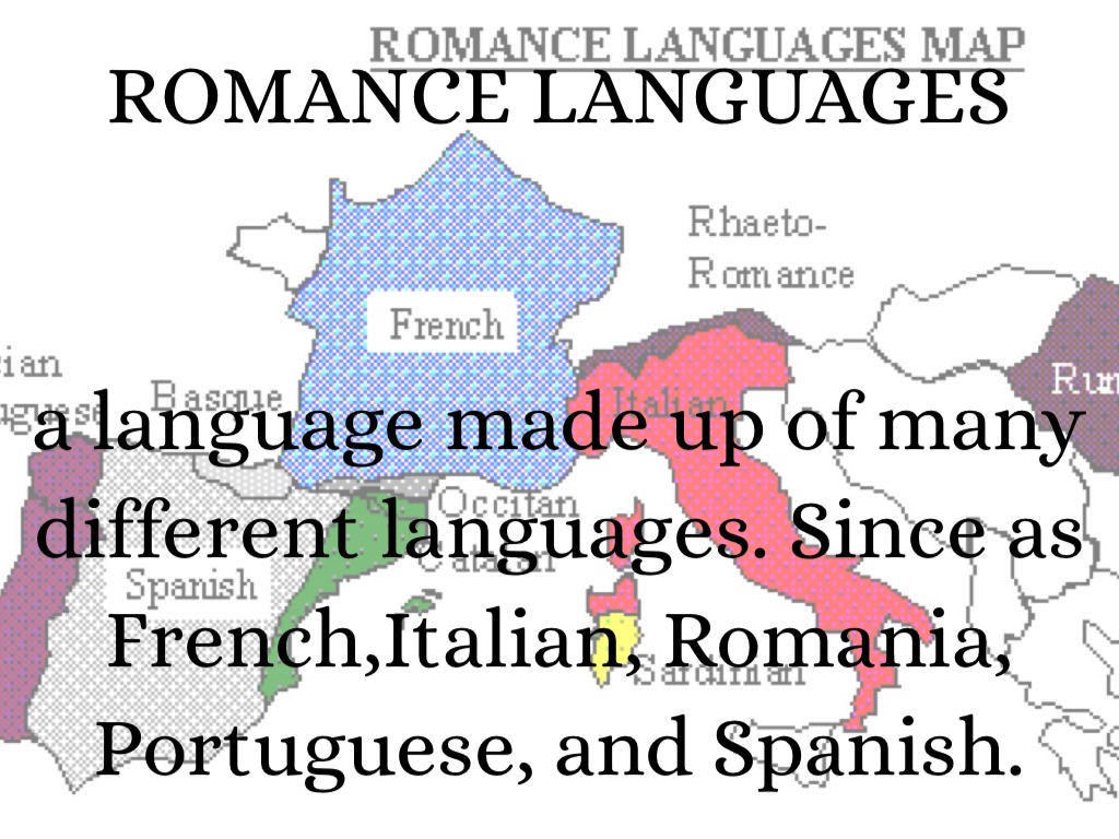 a language made up of many different languages. Since as French,Italian, Romania, Portuguese, and Spanish.