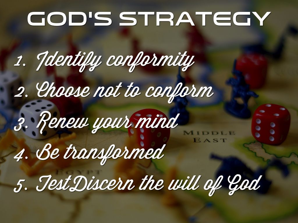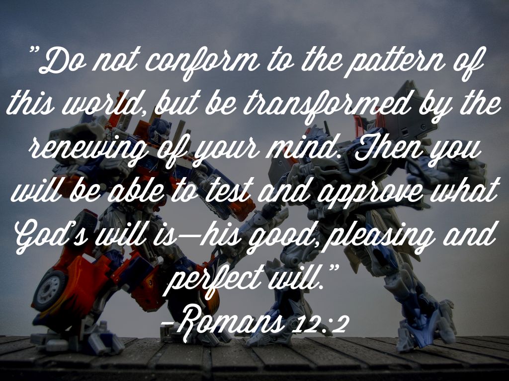 "Do not conform to the pattern of this world, but be transformed by the renewing of your mind. Then you will be able to test and approve what God’s will is—his good, pleasing and perfect will."