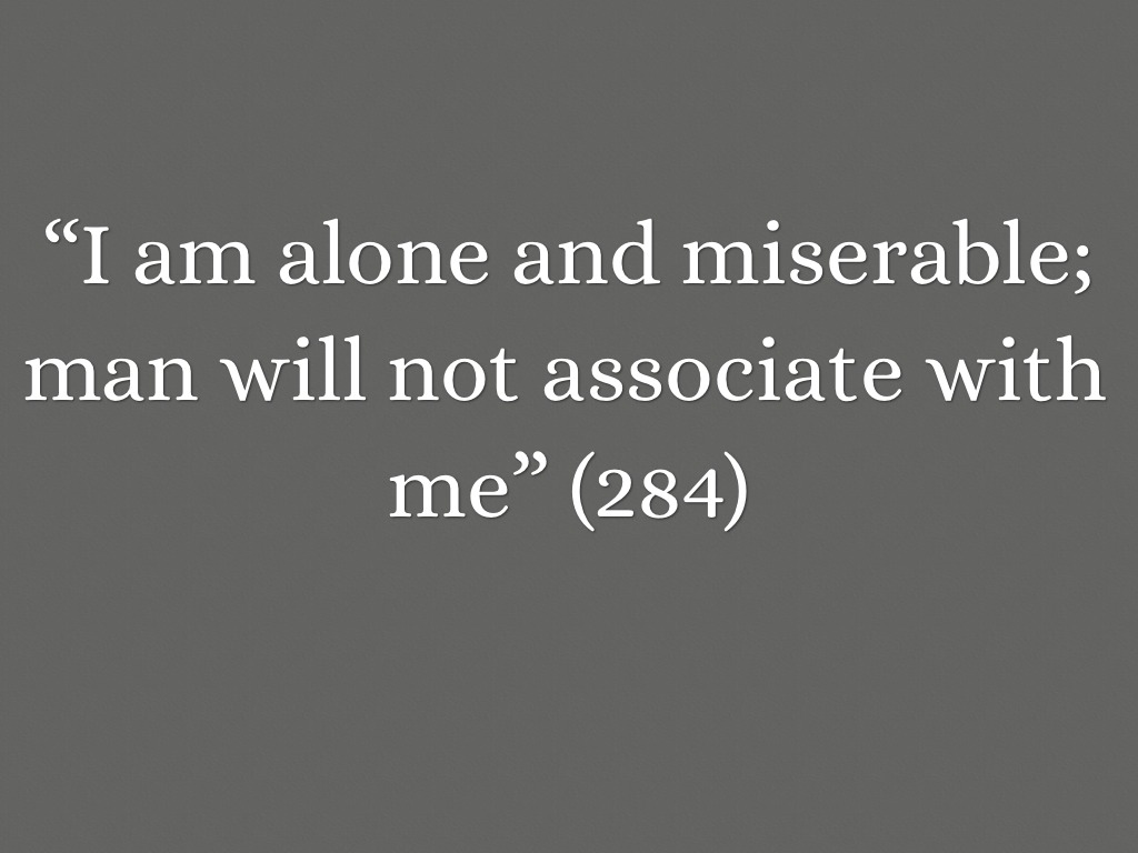 “I am alone and miserable; man will not associate with me” (284)