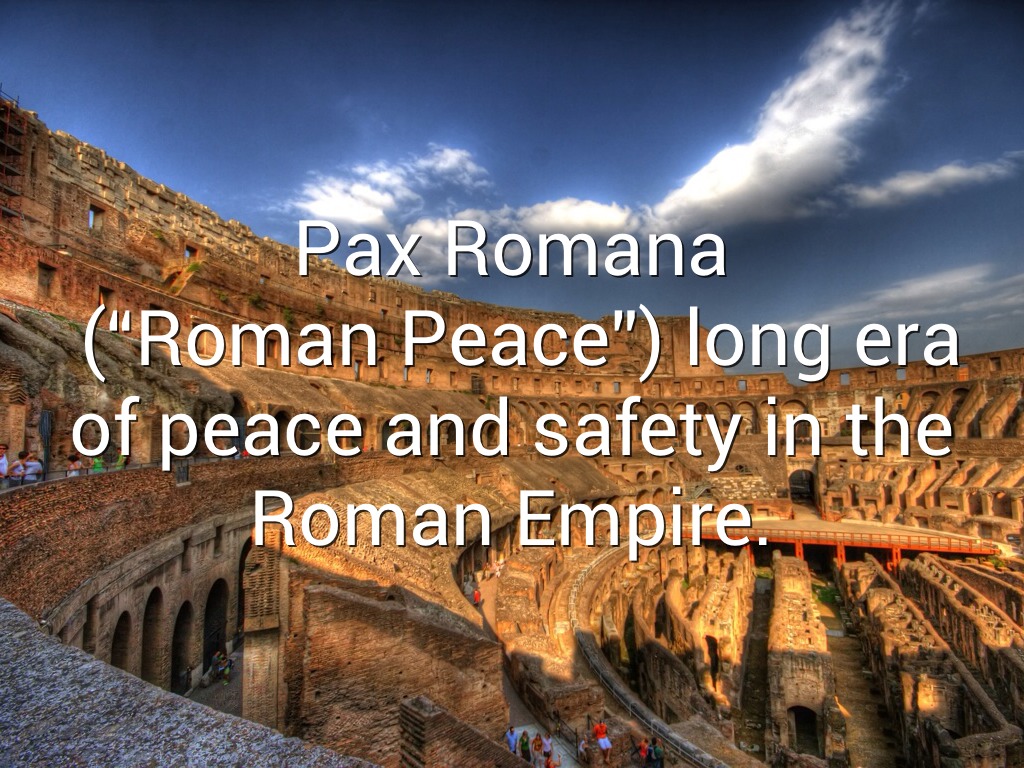 (“Roman Peace”) long era of peace and safety in the Roman Empire.