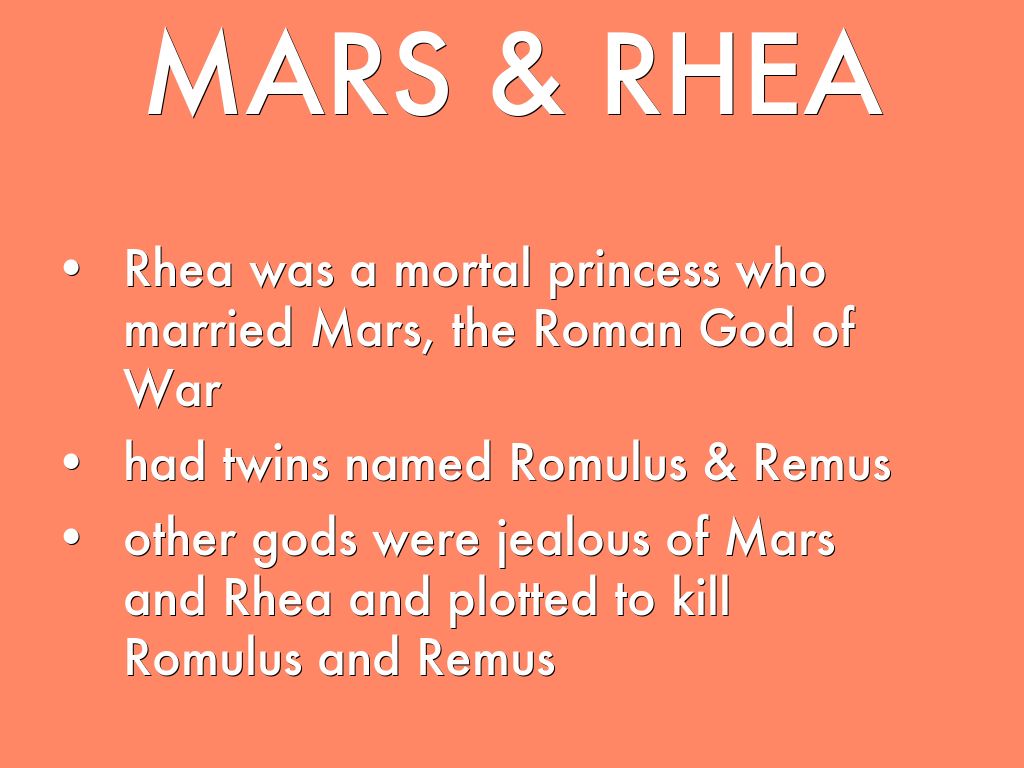 Rhea was a mortal princess who married Mars, the Roman God of War