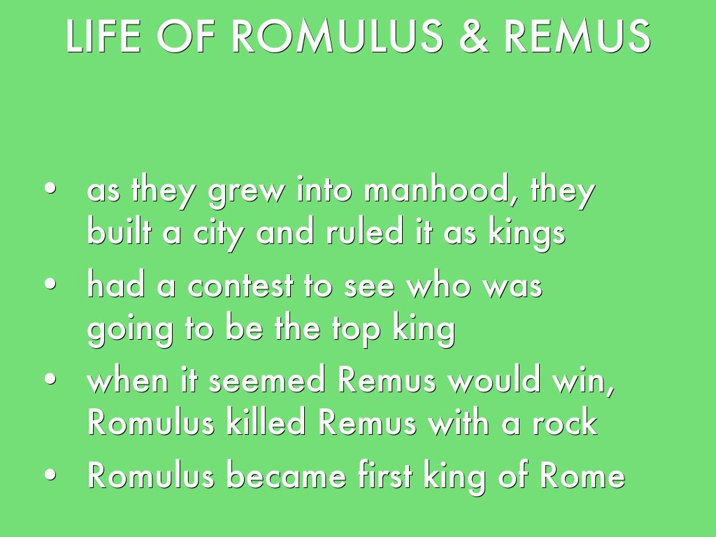 when it seemed Remus would win, Romulus killed Remus with a rock