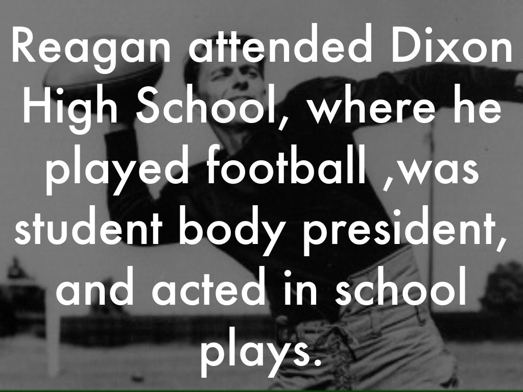 Reagan attended Dixon High School, where he played football ,was student body president, and acted in school plays.