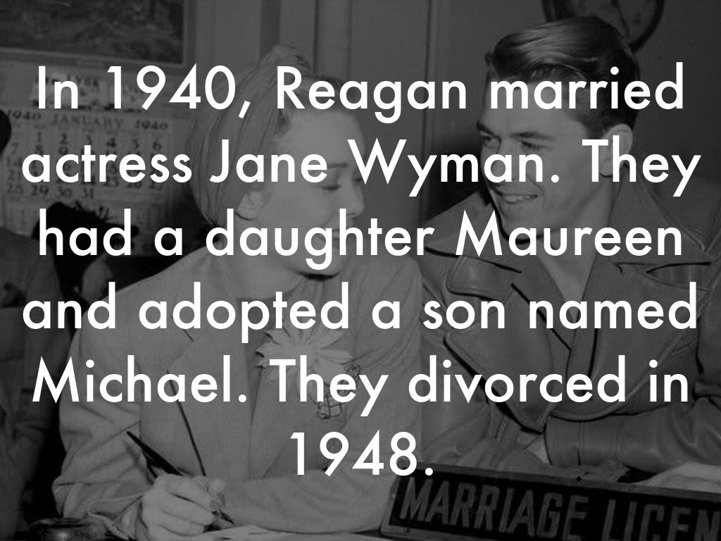 In 1940, Reagan married actress Jane Wyman. They had a daughter Maureen and adopted a son named Michael. They divorced in 1948.