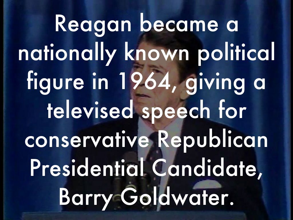 Reagan became a nationally known political figure in 1964, giving a televised speech for conservative Republican Presidential Candidate, Barry Goldwater.