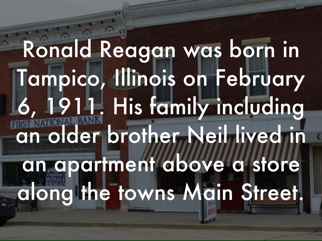 Ronald Reagan was born in Tampico, Illinois on February 6, 1911. His family including an older brother Neil lived in an apartment above a store along the towns Main Street.