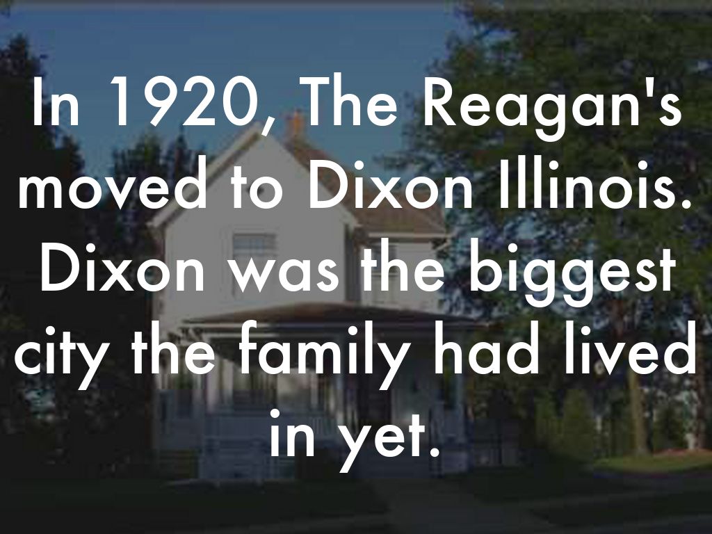 In 1920, The Reagan's moved to Dixon Illinois. Dixon was the biggest city the family had lived in yet.